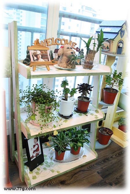 완성 모습입니다. 사다리 모양의 기둥과 함께 선반이 완성됐습니다. 원하시는 색도 칠해보시고,화분이나 장식품등을 올려두시면 되겠죠??