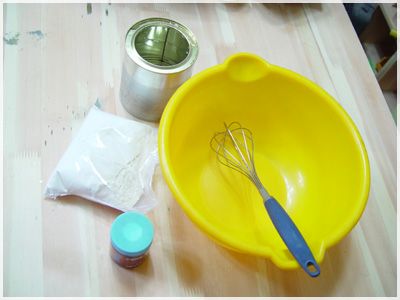재료사진입니다. 카제인,물,섞을수 있는 볼(바가지 등),섞는 기구,붓,사포,수성 착색제 등이 필요합니다.