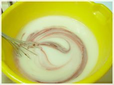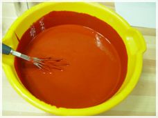 원하는 수성 착색제 색상을 앞의 카제인 혼합물과 골고루 혼합을 하면. 밀크 페인트가 완성 됩니다.