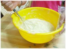 물을 붓고 혼합할때 느끼겠지만 물이 부족하면 젓기도 힘들고 뭉쳐버리기 때문에 알맞게 물은 조절해주세요~