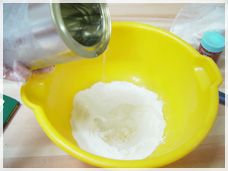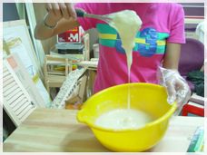 자,먼저 카제인 250g 과 물 750mL 를 잘 혼합하여 진흙형태로 반죽 합니다.
