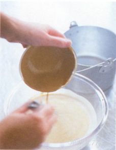혹시 뭉친 알갱이가 있거나 하다면 채나 망으로 잘 걸러 냅니다.