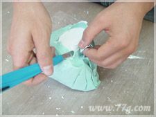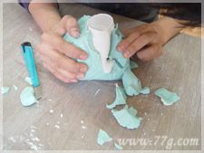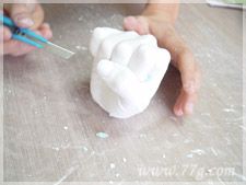 알지네이트 제거 하는 모습이에요.손으로 살살~ 칼로 슥슥 잘 제거해주시구요~ 알지네이트를 완전히 제거한 후 색을 입혀주세요.락카나 물감등으로~