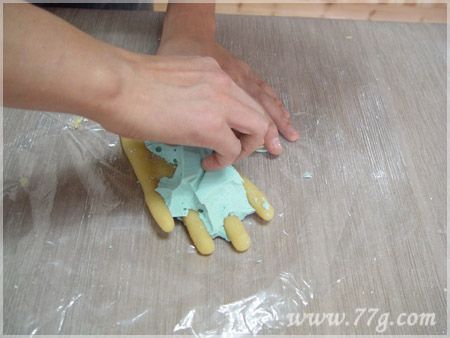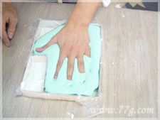 2~3분 정도 움직이지 않고 완전히 굳으면 틀과 손을 분리합니다.