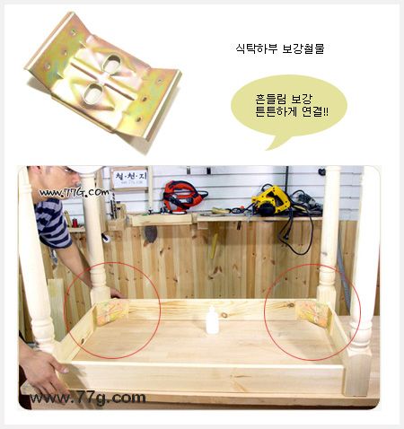 연결 철물만으로 아주 간단히 상판과 다리를 연결할수 있습니다.이번 기술지원은 상판과 다리 연결방법!!