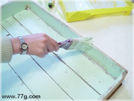 기존 화이트 페인트에 아크릴물감을 섞어 연한 파스텔그린색을 만들어보았습니다.