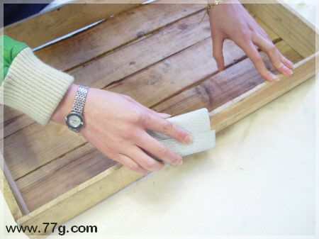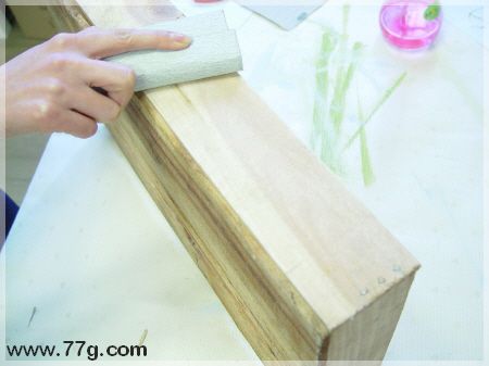 굵은 사포로 너무 거친면이나 지저분한것들을 제거해주세요~ 워낙의 거친괘짝이라 고운면으로 변신시키기는 무리였습니다.