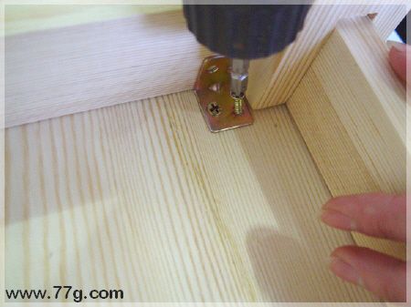 의자를 뒤집어 꺽쇠를 피스로 고정해주세요~ 꺽쇠를 고정하니 아주 튼튼합니다.^^