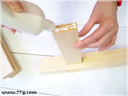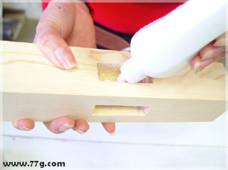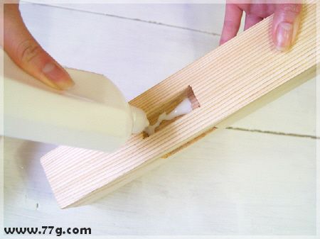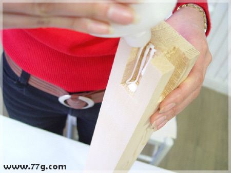 상판을 다리와 고정을 하는데여~ 먼저 다리 상단부분에 사진과 같이 본드를 발라줍니다.