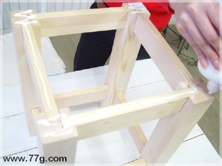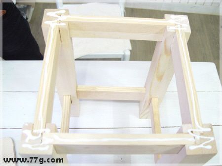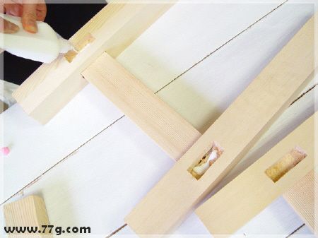 다리의 윗부분에 가공된 부분에도 역시 본드로 각재를 다리마다 연결해줍니다.