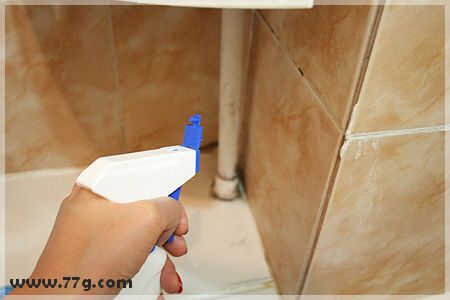 건물안 낡은 화장실 구석입니다.물때 및 곰팡이가 끼어있는곳에 분사합니다.