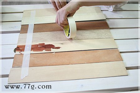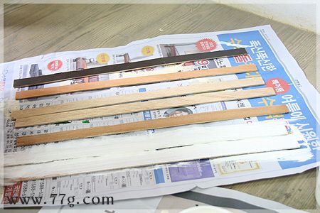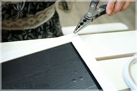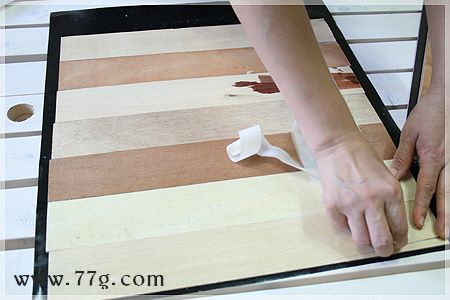 패널에 흰색페인트를 한쪽면에 발라 말립니다 페인트칠한 얇은 합판을 뒤집어(페인팅 안한면) 양면테이프를 붙여주세요.