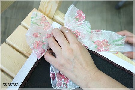 끈으로 리본을 묶어 글루건으로 고정을 해주었습니다.