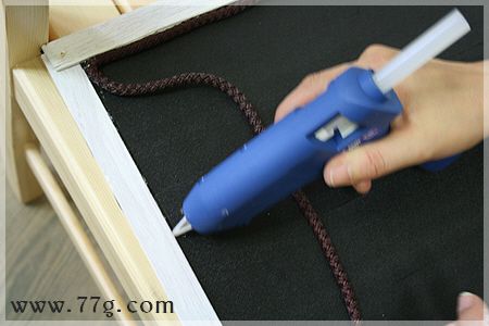 조금은 완전한 작업을 위해 로프끈으로 테두리를 감아줍니다. 글루건을 쏘면서 로프끈을 고정해주세요.