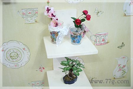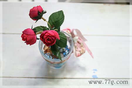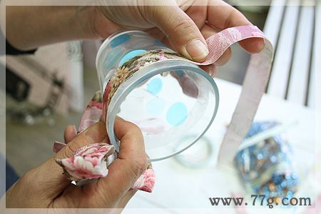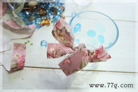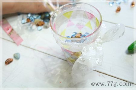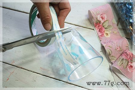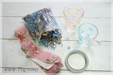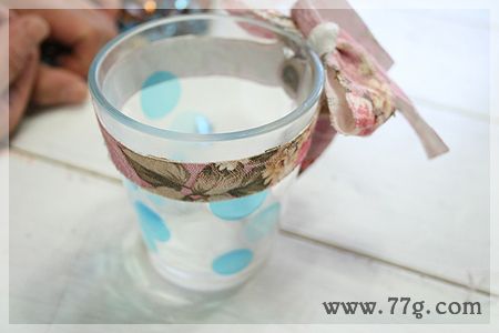 손잡이가 없는 컵은 레이스 원단으로 둘러준다음 리본으로 묶어주면 완성!!