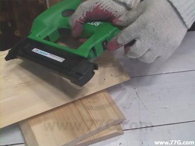 고정할 부분에 타카 끝을 직각으로 향하게 한 후, 방아쇠를 당기면 발사됩니다.