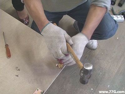 해머 드라이버로 나사못을 고정한 후, 망치로 박아줍니다.