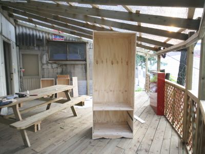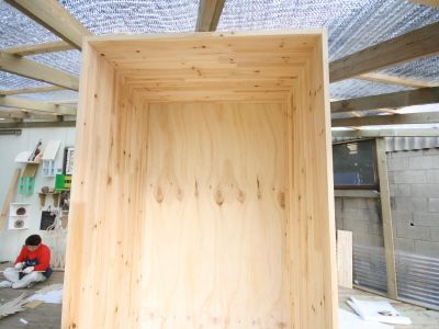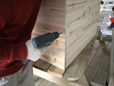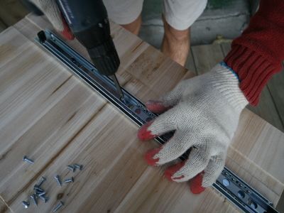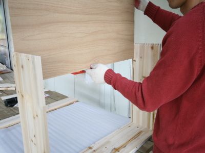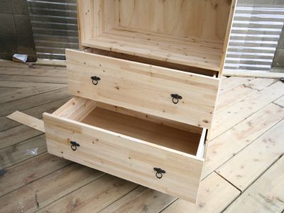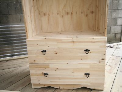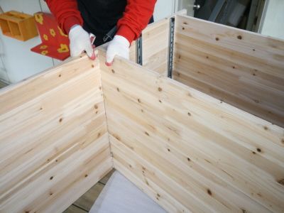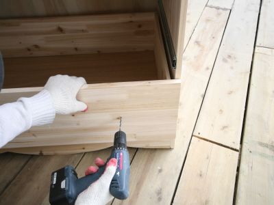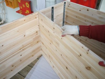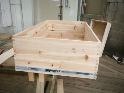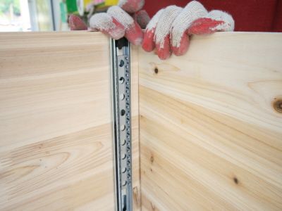 ㄱㄷ 형태가 된후에는 뒷판을 끼워 줍니다.그리고, 오래된 서랍가구의 고질적인 문제인 서랍 밑판이 빠지는 문제를 해결 하기 위해 하단에 목재를 덧대서 고정을 해줍니다.