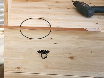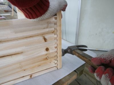 망치를 칠때는 나무 조각들을 대고 쳐서 목재에 손상이 되는것을 방지 해주세요. 물론, 서랍 인지라, 잘 보이지 않는 부분이긴 합니다만,