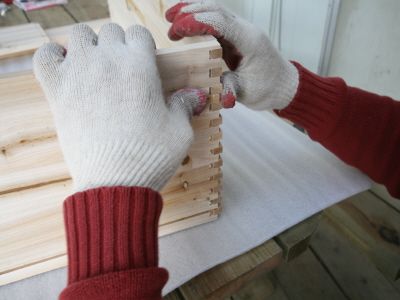 전체 사개 마춤 조립으로 가구의 서랍부분을 조립 합니다. 나무와 나무가만나는 부분들은 모두 목공본드를 발라 줍니다.