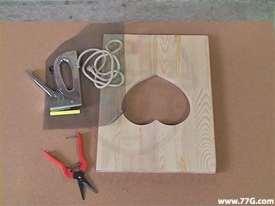 캐릭터 문짝, 그물, 로프, 타카, 분필, 철재가위를 준비합니다.