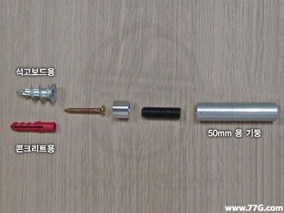 선반을 고정시킬 철물들입니다. 이번에는 콘크리트용이 아닌 석고보드에 설치하는 모습을 보여드리겠습니다.