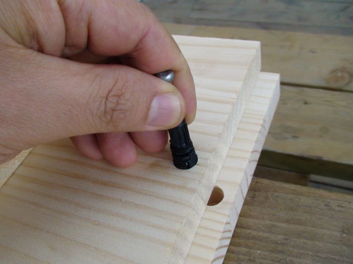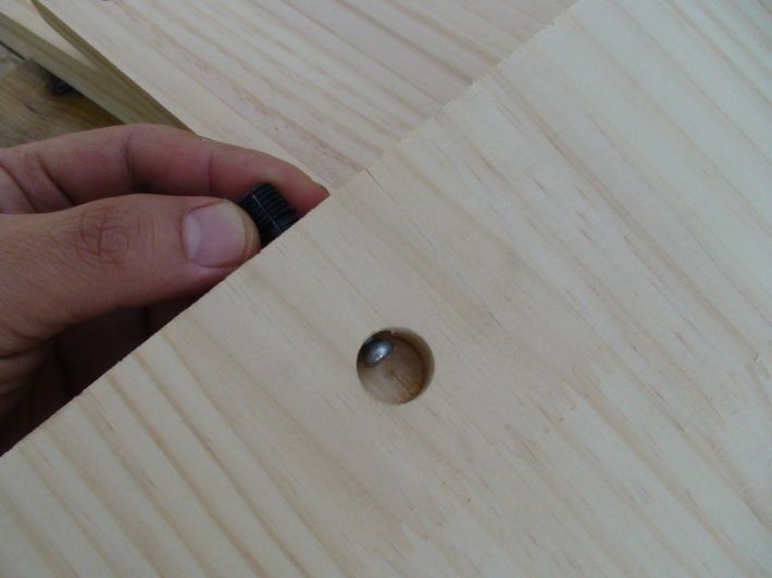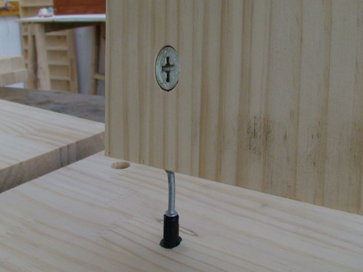 조립방법은 먼저 미니픽스 볼트를 10mm 뚫어둔 구멍에 손으로 끼웁니다. 한번 고정 하면 비틀면서 빼야만 빠집니다. .