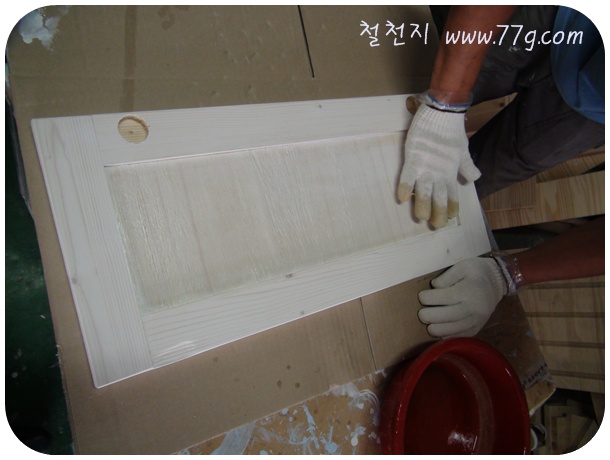 어제부터 부지런히 원목에 크림색상으로 칠을 했습니다. 스펀지가 아니라, 면장갑을 쓰고 옅게 골고루 발랐습니다.