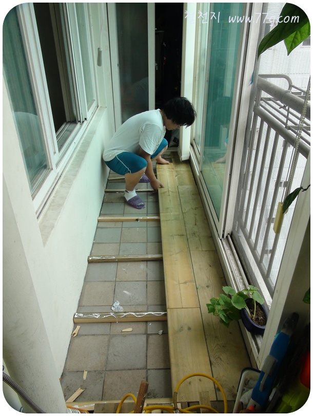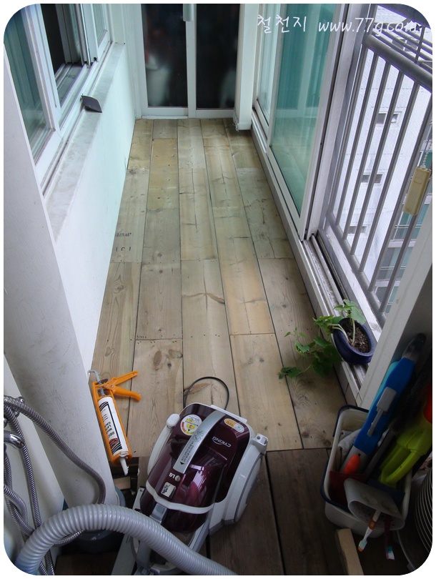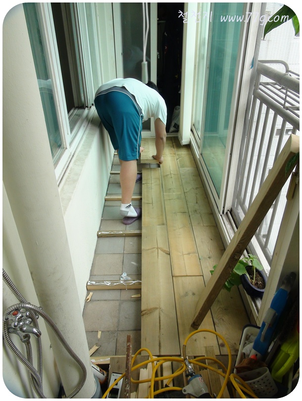 아내에게 약속 했던 베란다에 마루를 깔아 주기로 했습니다. 사실은 제가 더 필요 했어요..