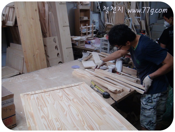 정확한 실측으로 공장에서 모두 나무를 잘라 왔습니다. 바닥 판만 정확한사이즈로 두고 바닥에 고정 한후..