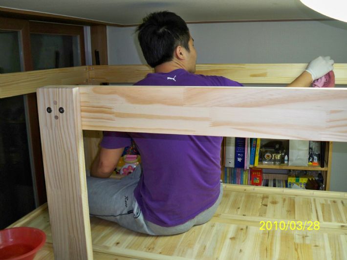 13. 난관고정 완료 : 난관까지 모두 고정시켜 놓으니.. 진짜 이뻐진 벙커침대가 보입니다..