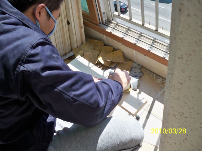 2. 샌딩작업 : 딸아이의 안전을 위해 열심히 샌딩작업중(사포질) - 사실 이작업이 제일 힘들었습니다..