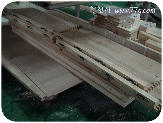 슬라이딩 침대로 출고될 제품은 기차바퀴처럼 바퀴들을 촘촘히 고정 했습니다.