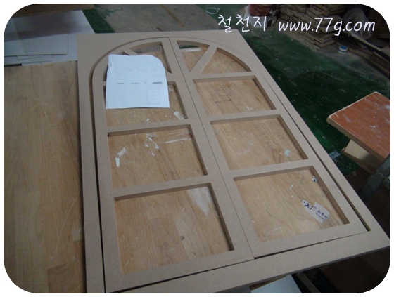 프로방스 창문 입니다. MDF 재질 이지요. MDF 는 결대로의 방향성이 없어서 가공 하기가 쉬워서.