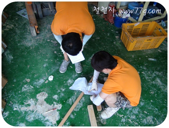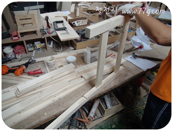라왕각재와 합판을 절단했고요.