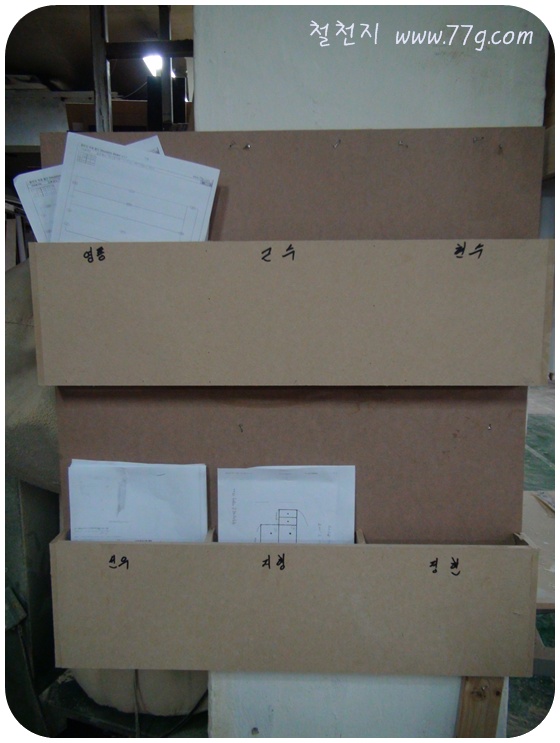 아침부터.. 주문서를 나누는 함을 만들어 고정을 했읍니다.