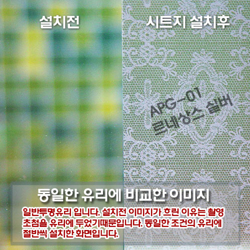 시공방법1. 원하는 패턴 색상등의 제품을 선택합니다. 2. 접착하는 면 표면에 오염이 되어있는 먼지 이물질 등을 제거 합니다.3. 시공면에 물을 충분히 뿌려줍니다.(유리면은 시트지가 강력히 붙기 때문에   시트지시공을 편리하며 깔끔하게 붙일수 있기때문에 물을 뿌려줍니다.)   단 너무 많지 않은 적당량의 물을 뿌려주시기 바립니다. 5. 필름의 이형지를 조금씩 벗겨가며 면에 기포가 잘 빠지도록 붙여줍니다.용도 - 장식장유리 욕실유리 베란다창유리 쇼윈도장식유리 각종유리문등