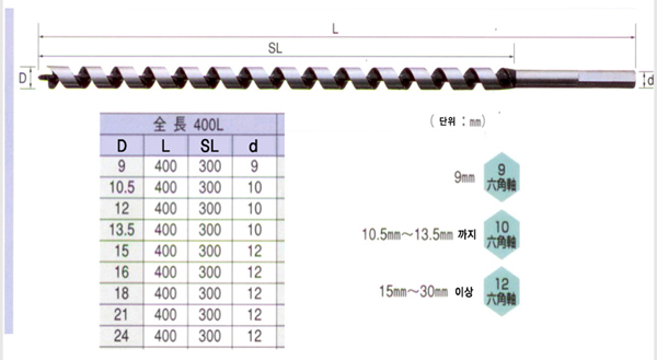 목공용 드릴날(NO400.기리) 12X400mm 수입일본