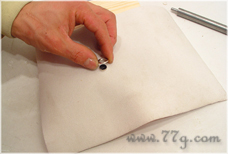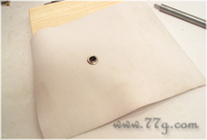 구멍쇠에 맞게 홈이 살짝 파져 있으니 맞춰 놓으시고,그 다음엔 인조가죽을 정면이 바닥으로 가게끔~사진과 같이 구멍쇠위에 끼워주세요~ | |