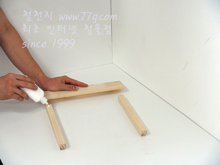 두개의 선반 먼저 조립합니다, 우선 선반 뒤쪽의 ㄱ 자를 만듭니다, 목공본드를 바르시고