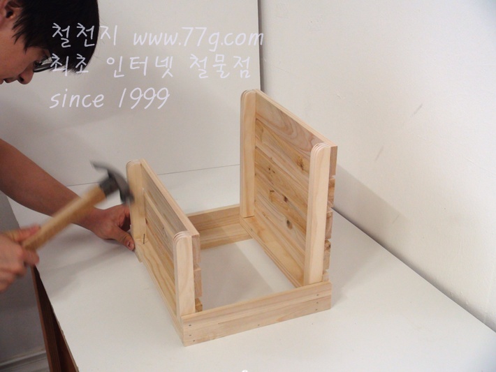 ㄱ자를 다 만들고 선반 측판과 고정합니다, 본드바르시고 못으로 고정하세요,