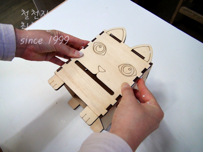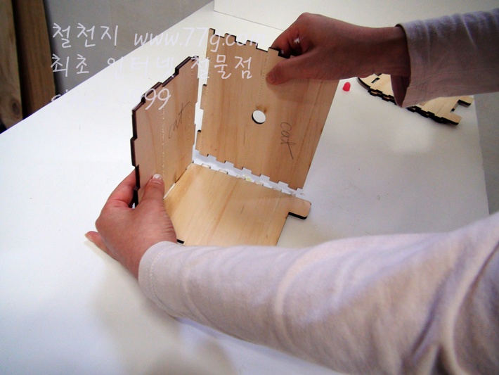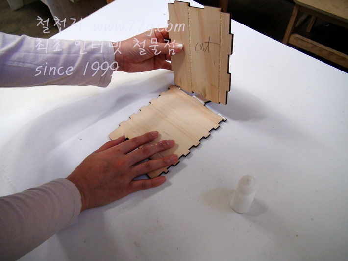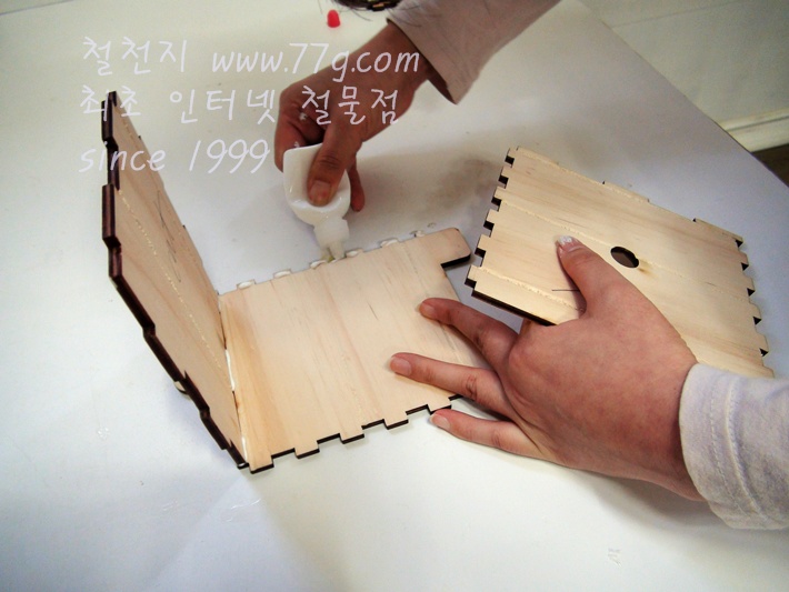 왼쪽판 짜임모양에도 본드칠을 한 후 조립하여 붙입니다