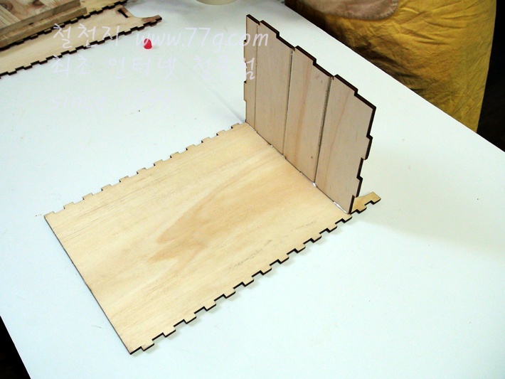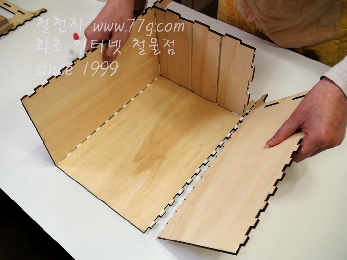 오른쪽 옆판도 튀어나온 네모들위에 본드칠을 한 후 조립하여 붙입니다