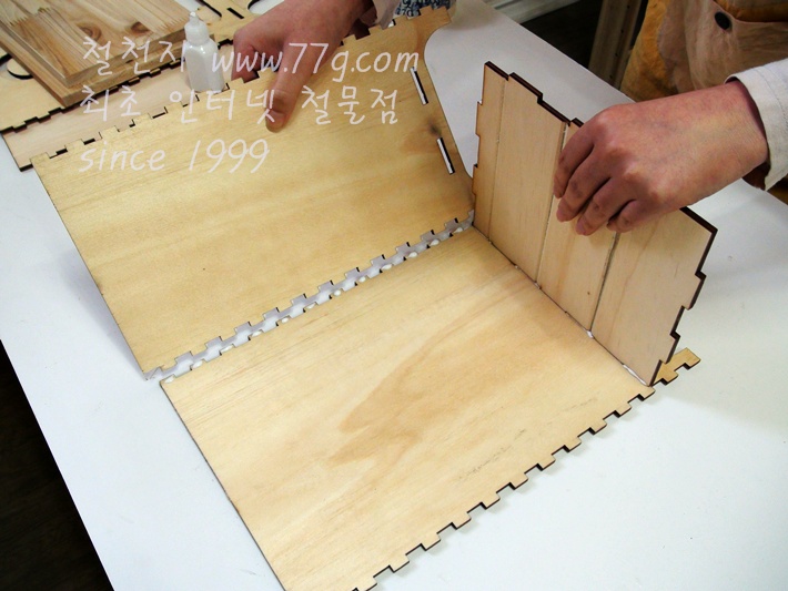 이제 앞판이 조립될 곳에 본드칠을 한 후 앞판을 조립해 붙입니다