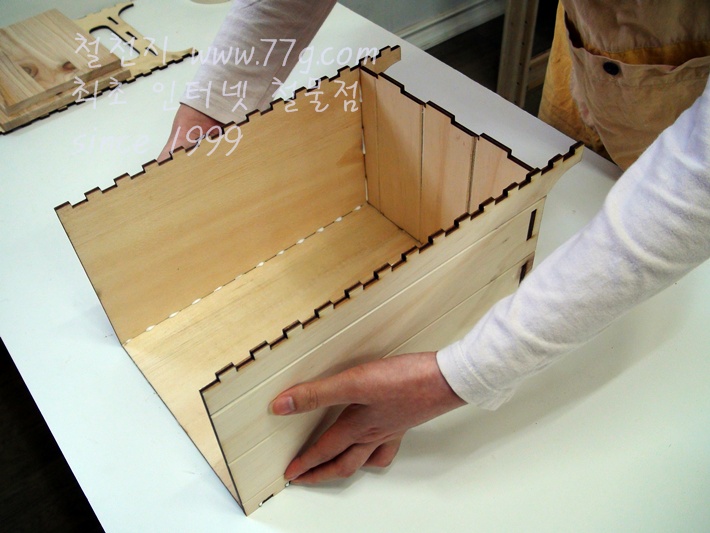 바닥판 1장 (미송합판200mm X 160mm x 4.8mm) 뚜껑 (삼나무 216mm x 174mm x 12mm, 197x157x12mm)