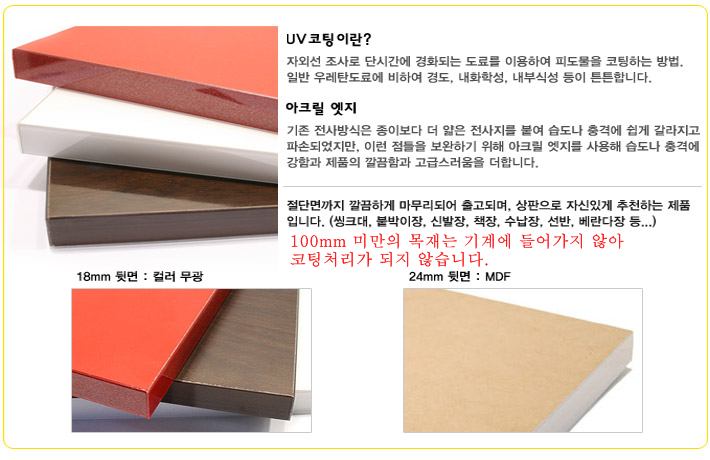 일반 우레탄 도료에 비하여 경도,내화학성,내부식성 등이 높으며 속재질은 MDF 입니다.