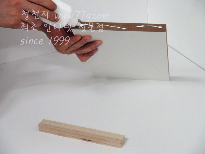 자 이제 측면에 목공본드를 바르고 좌우 쫄대를 고정합니다.