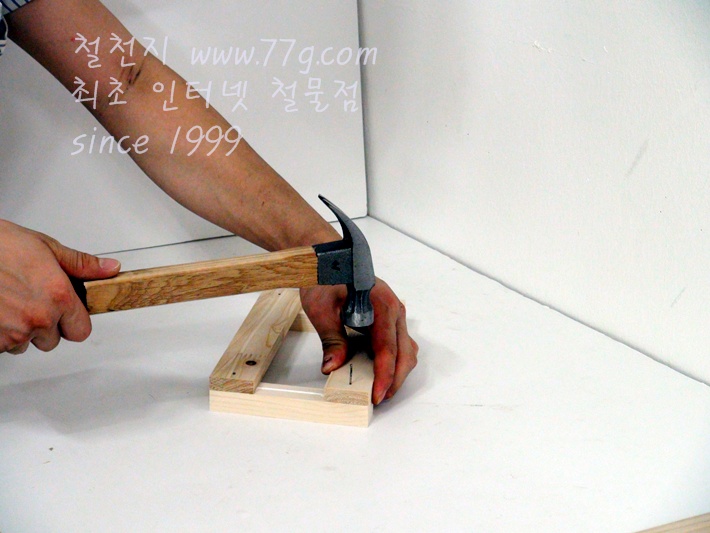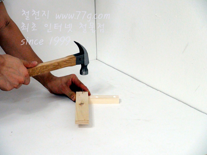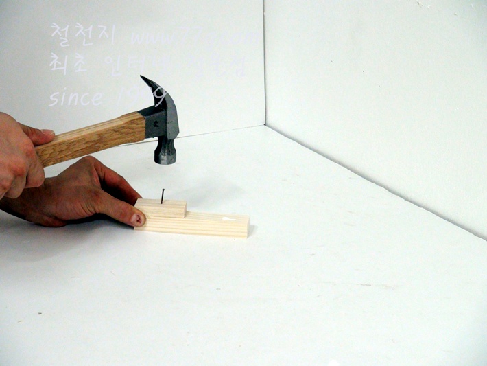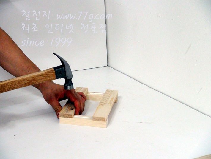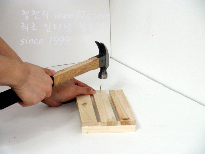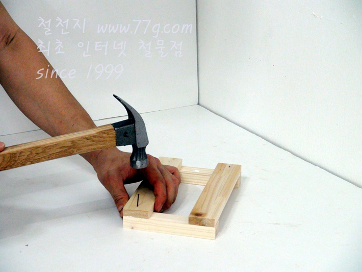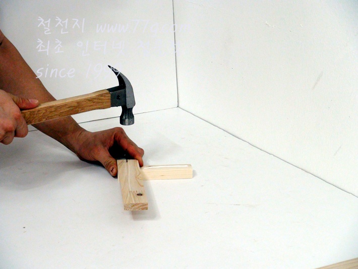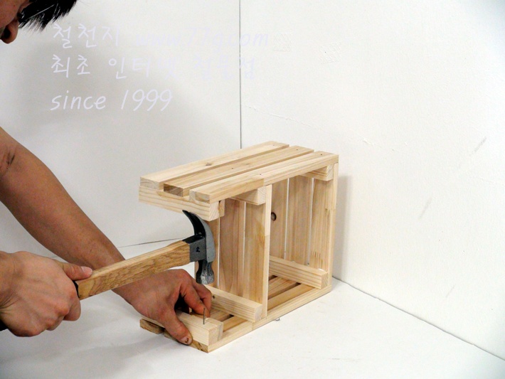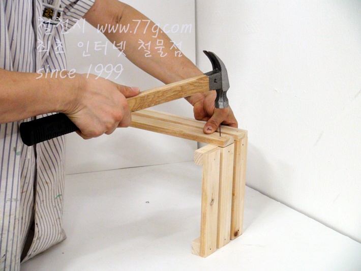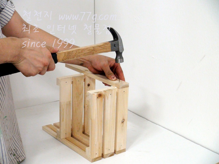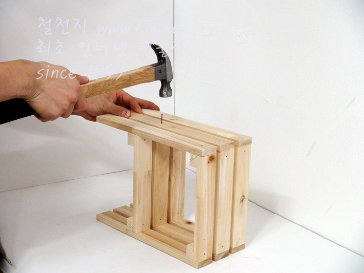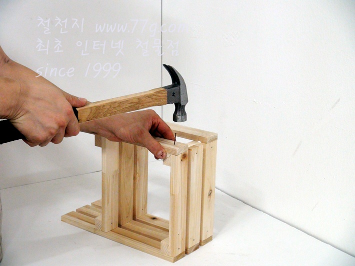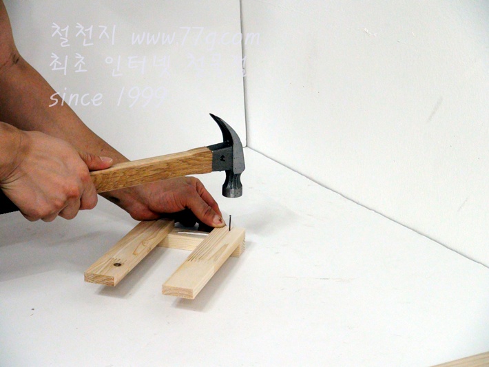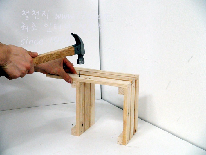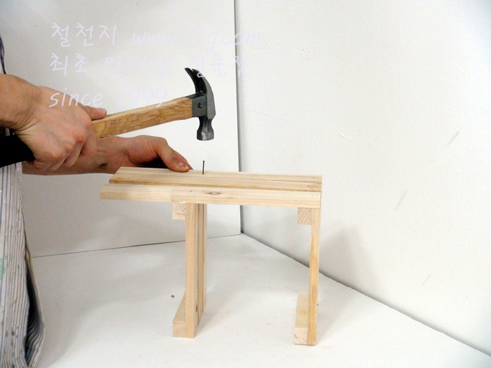 이제 가로대를 고정합니다, 못질 하기전 미리 못을 살짝 고정하고 밖으시면 못질이 훨씬 수월합니다,